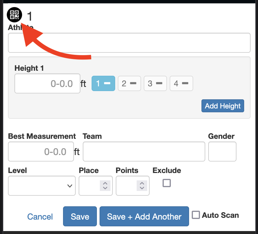 - As each athlete checks in for the event, or before their first attempt, scan in their QR code.