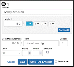 - If it’s the first time this height has been attempted by any athlete, set the value of the height. After the first athlete attempts it, that height will show for all athletes.
